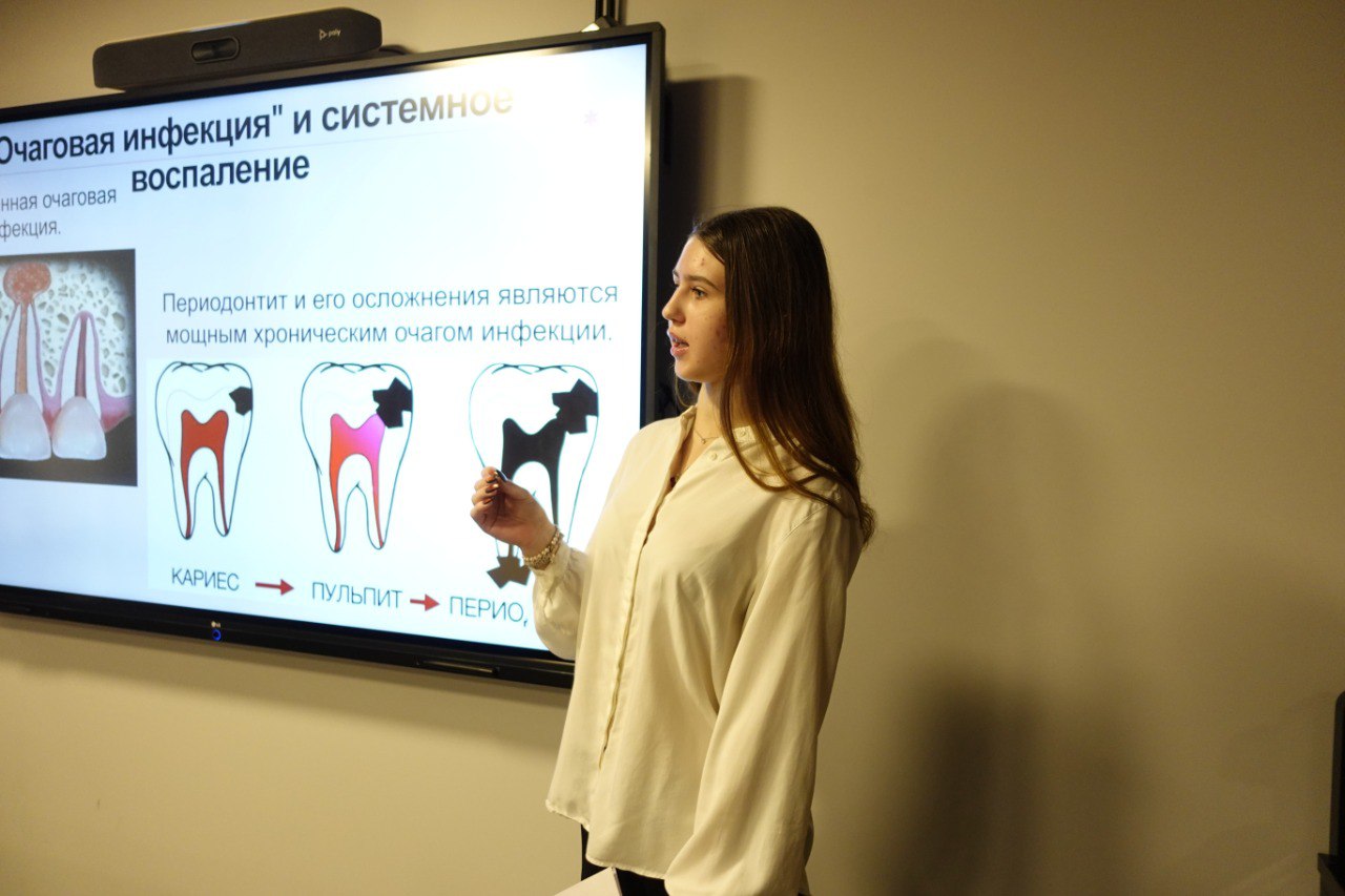 В завершение встречи студентка первого курса лечебного факультета Макарова Марина поделилась своей историей успеха и вдохновила ребят на дальнейшие научные открытия и активное изучение медицины.