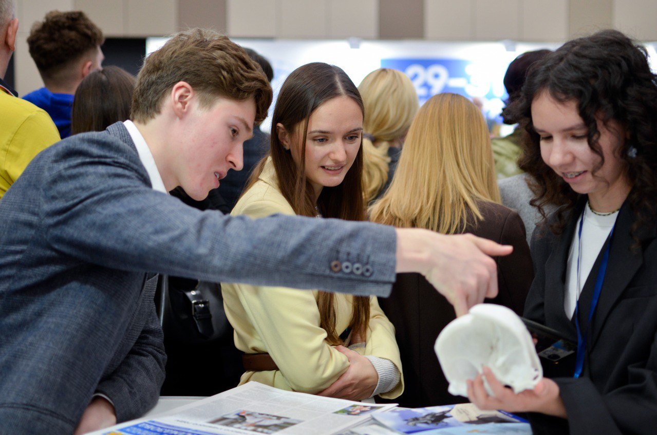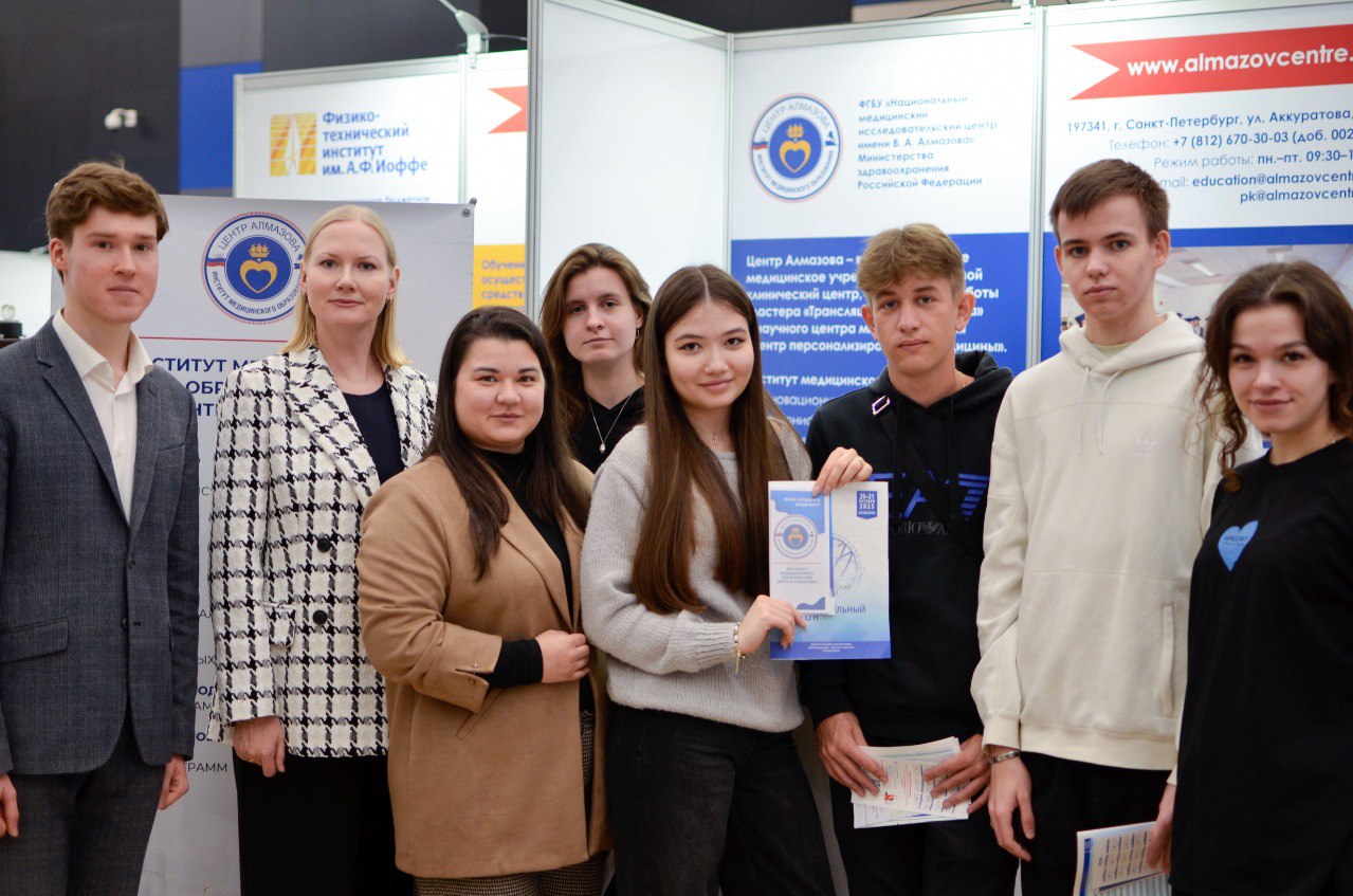 В рамках форума прошел Санкт-Петербургский Международный научно-образовательный салон. На стенде ИМО Центра Алмазова сотрудники факультете довузовского образования и молодежной науки рассказывали об особенностях приемной кампании 2026, курсах по подготовке к ЕГЭ, профориентационной работе со школьниками. Студенты отвечали на многочисленные вопросы абитуриентов и их родителей об учебной и внеучебной жизни алмазовцев, честно признаваясь, что учиться трудно, но интересно.