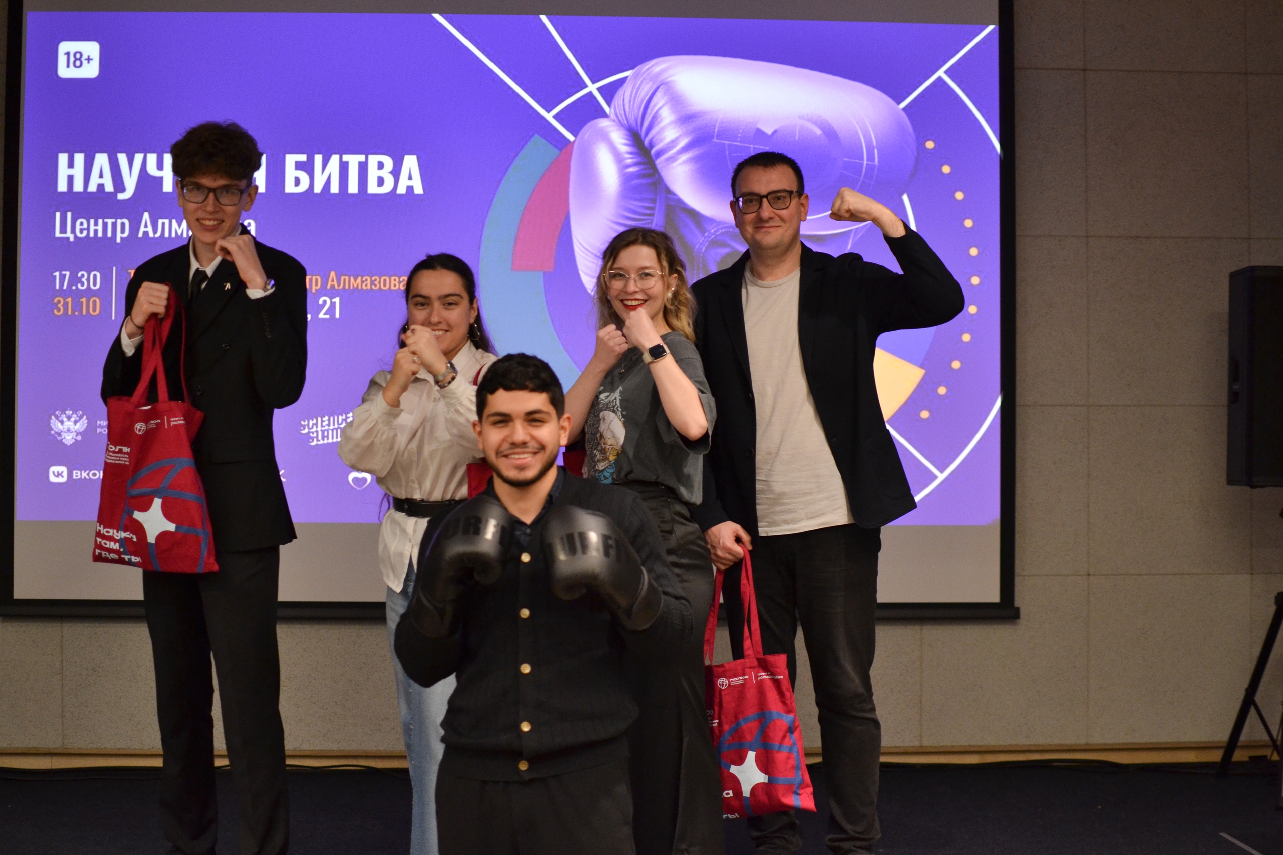 Этот громкий праздник науки и несдерживаемых эмоций не состоялся бы без организаторов — факультета довузовского образования и молодежной науки ИМО Центра Алмазова, СОМУ, великолепной ведущей Елизаветы Дрейзиной и всех не жалевшей ладоней зрителей!