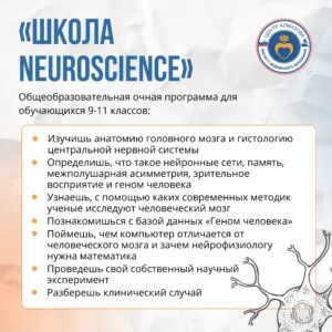 В период зимних каникул на Факультете Довузовского образования и молодежной науки Института медицинского образования Центра Алмазова, с 05.01.2026 стартует новый курс«Школы Neuroscience (нейронаука)».