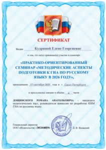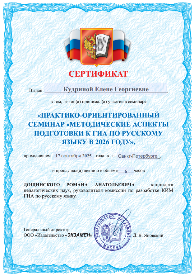 - Преподаватель русского языка и литературы высшей квалификационной категории;